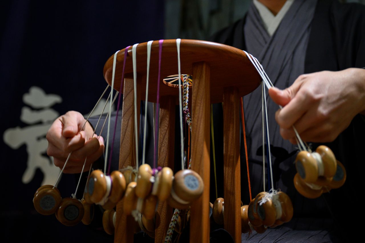Kumihimo originates during the Nara Period, and was once widely used in functional items such as arms and armor, and Buddhist ritual implements, and today lives on mainly in the form of traditional Japanese clothing accessories and decorative elements. A variety of different styles, including Mitake-gumi, Kara-gumi, and Yurugi-gumi, and different braiding stands (marudai, kakudai, ayatakedai, takadai, etc.) are used to create delicate patterns and dimensionality. Kumihimo embody the sense of Japanese aesthetics and the skills of the artisans who create them, and its expressive potential continues to evolve and expand to new applications over time.