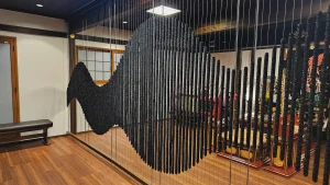 Eight layers of kumihimo form a richly dimensional object, designed with careful consideration to angles and composition. The result is an elegant, visually striking presence that transforms the space with warmth and depth.